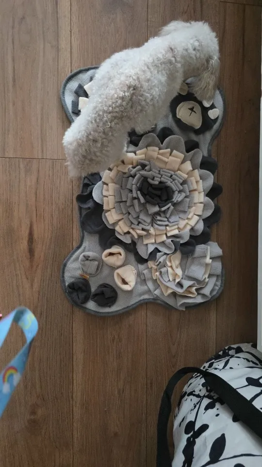 Keep your dog mentally sharp and happily occupied with the Booteely Interactive Snuffle Mat. Designed with a multi-layered flower pattern and hidden treat pockets, it turns mealtime into an enriching foraging game. Perfect for small to medium dogs, cats, and rabbits, this mat encourages slow feeding, reduces boredom, and supports healthy digestion. The anti-slip base keeps it secure, while the soft fleece material ensures comfort and safety during every sniffing session.